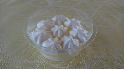 and as finishing touch lemon mousse with whipped cream and a gelled lemon juice layer between the mousse and the whipped cream. Recipe on home-made lemon mousse.